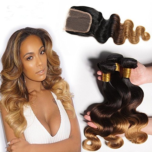 8A Ombre Blonde T1B/4/27 Brazilian Virgin Human Hair Body Wave 3 Bundles With Closure Lace Closure With Bundles -202224+20inch : Beauty