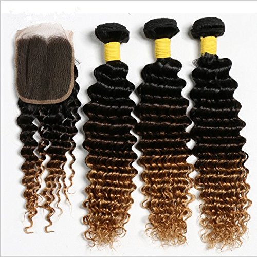 8A Ombre Hair Extensions Brazilian Virgin Human Hair Curly Weave Free Part Ombre Closure With 3 Pcs Hair Bundles -222224+18inch : Beauty