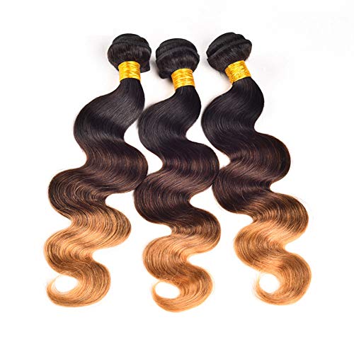 Brazilian Body Wave Bundles Virgin Ombre Hair Extensions Human Hair 3 Tone Hair Bundles Wet And Wavy Human Hair Weave Bundles (18 20 22, 1B/4/27) : Beauty
