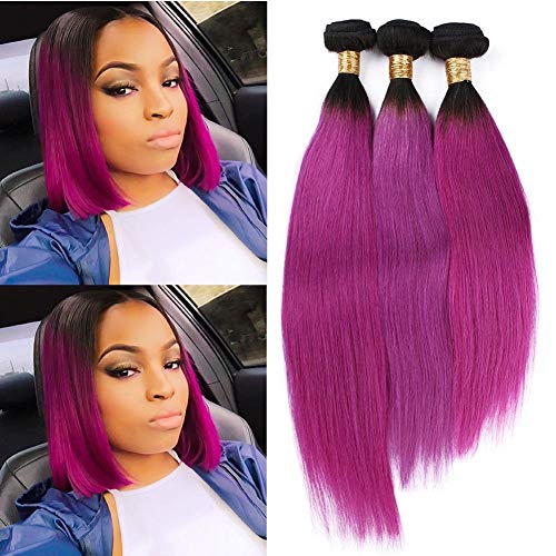 #1B/Purple Ombre Straight Human Hair Weave Bundles Ombre Purple Brazilian Human Hair 3 Bundles Lot Dark Roots to Purple Ombre Silky Straight Virgin Hair Weft Extensions 10-30″ (12 12 12)