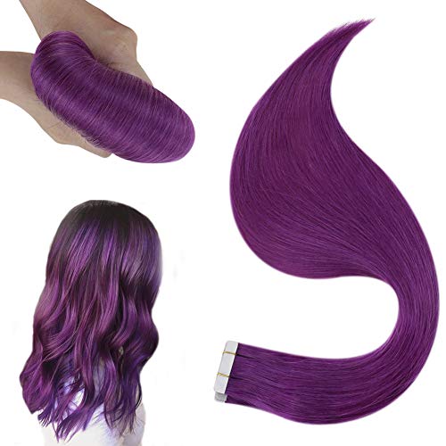 Hetto Purple Human Hair Extensions Glue in Double Sided Tape for Fashion 16 Inch Brazilian Extensions Tape in Real Hair 10Pcs 25G
